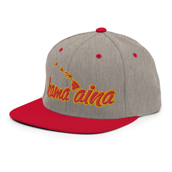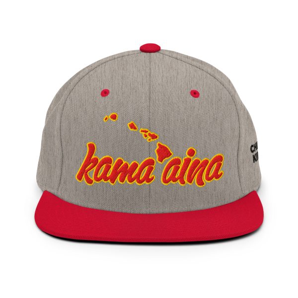 Kama’aina Islands Script Classic Snapback Hat | Heather Grey / Red | 3D Puff Multicolor